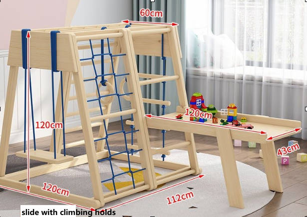 Uşaqlarınızın taxta dırmanma çərçivəsi ilə evinizdə mini macəra parkı yaradın! Toddlers və gənc uşaqlar üçün mükəmməl, bu playset, aktiv əyləncənin saatları təklif edən bir slayd, yelləncək və dırmaşma divarı daxildir.