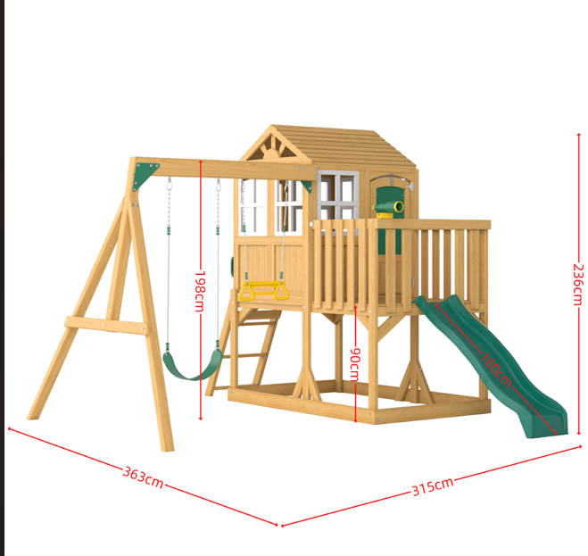 Ən son və ən populyar məhsullarımızdan birini tanıtmaqdan məmnunuq - slayd, dırmaşma divarı və taxta yelləncək çərçivəsi olan açıq ağac oyunu! Bu hamısı bir arxa həyət macəra dəsti tez bir zamanda ailələr arasında sevimlisinə çevrildi və bunun səbəbini görmək asandır.